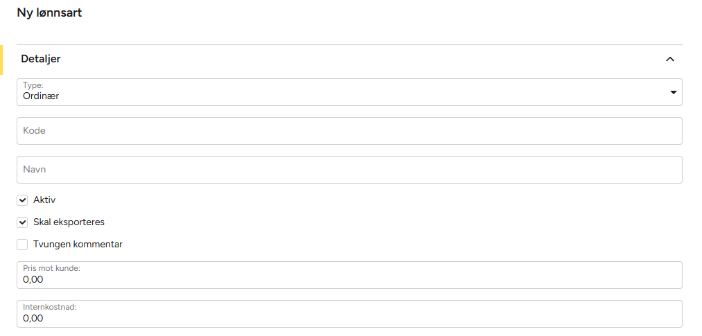 6. Klikk Lagre for å opprette lønnsarten eller tillegget.
