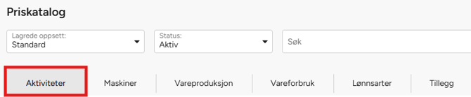 Dersom det ikke er satt egne prosjektpriser brukes i stedet standardprisen fra priskatalogen/i aktivitetsdetaljene.