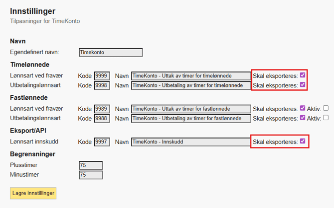 Innskudd til Timekonto kan overføres til en timeart i PowerOffice som ikke genererer lønn, men timene blir likevel prosjektført.
