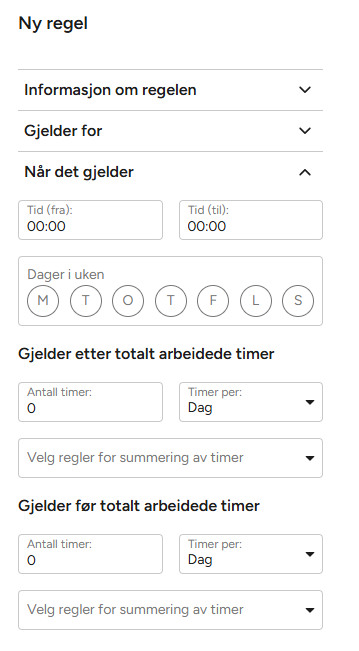 - Dager i uken: Trykk på dagene der er ønskelig at regelen trer inn.