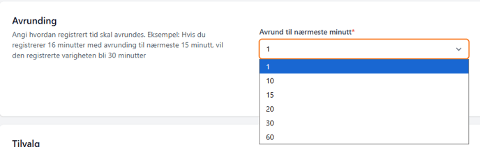 - I fanen Avrunding: Angi ønsket avrunding til nærmeste minutt.