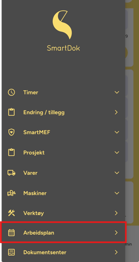 Gå til Meny nederst til venstre → Arbeidsplan.