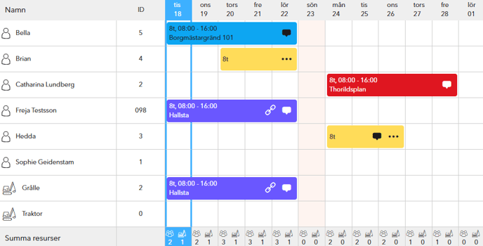 - Under planering kan du välja att koppla registreringen till andra resurser, som användare och maskiner.