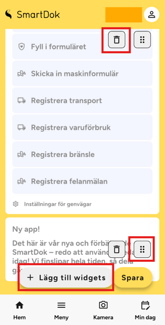 Vilka widgets finns i SmartDok-appen?