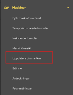 Gå till Meny → Maskiner → Uppdatera timmar/km.
