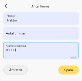 Fyll i nödvändig information om timmar eller kilometerställning.
