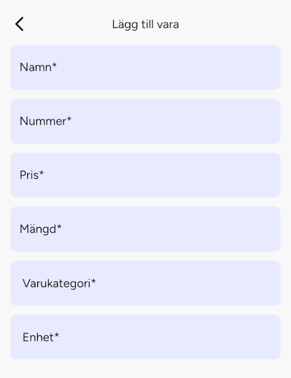 Obs: Det är endast administratörer och projektadministratörer som har tillgång till Varuöversikten i appen och därmed kan skapa varor.