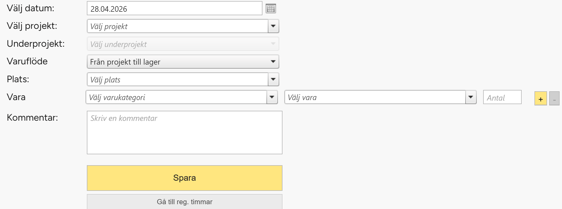 I SmartDok kan du registrera förbrukning av varor, material på projekt eller underprojekt direkt via webben.