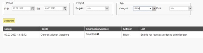 Hur raderar man bilder som skickats in via projekt eller formulär i SmartDok?