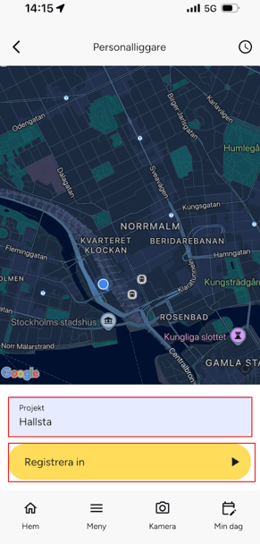 Checka in och ut på projekt i SmartDok-appen