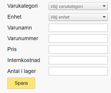 1. Gå till Företagsinställningar → Varuförbrukning eller Varuproduktion → Ny vara.