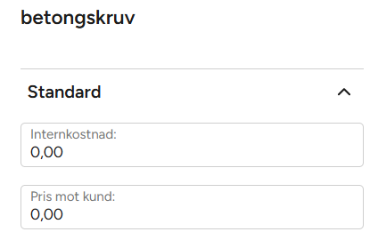 3. Ange standardpris i fälten Pris och Internkostnad.