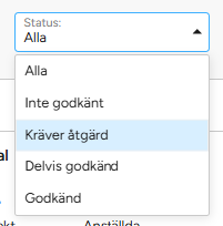 - I Statusfältet kan du bland annat välja om du vill se timmar som är Godkända och Ej godkända (eller alla).