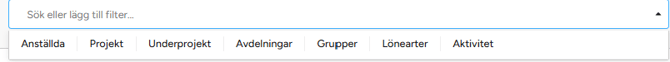 Du kan filtrera visningen baserat på:- Anställda: Visar alla tidsregistreringar för valda anställda.