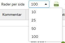 - I tabellen kan du också välja hur många rader du vill visa per sida (10, 20, 50 eller 100).