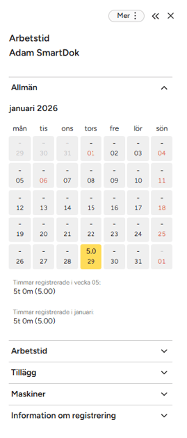 - Arbetsdag i kalendervy
