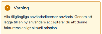 - När du sparar en ny användare accepterar du att den nya licensen faktureras enligt gällande prisplan.