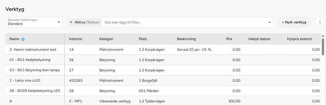 Sök och filtrera: Hitta specifika verktyg snabbt med hjälp av sökfunktionen.